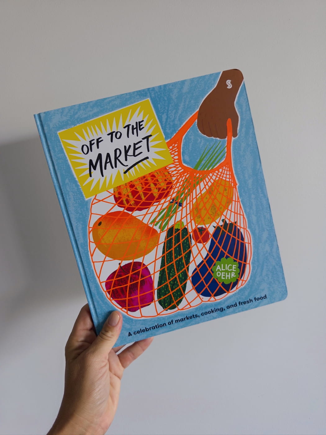 Alice's first book for kids, Off to the Market, is a journey through the weekly shop. Following a list and making plans for what to cook for the week. The book brings together everything we love about a market visit- shopping seasonal, chatting to stall holders, taking in the colours, having a snack and admiring the graphic signs and boxes. All these things are illustrated in the book, with plenty of fruit & veg info to learn along the way.