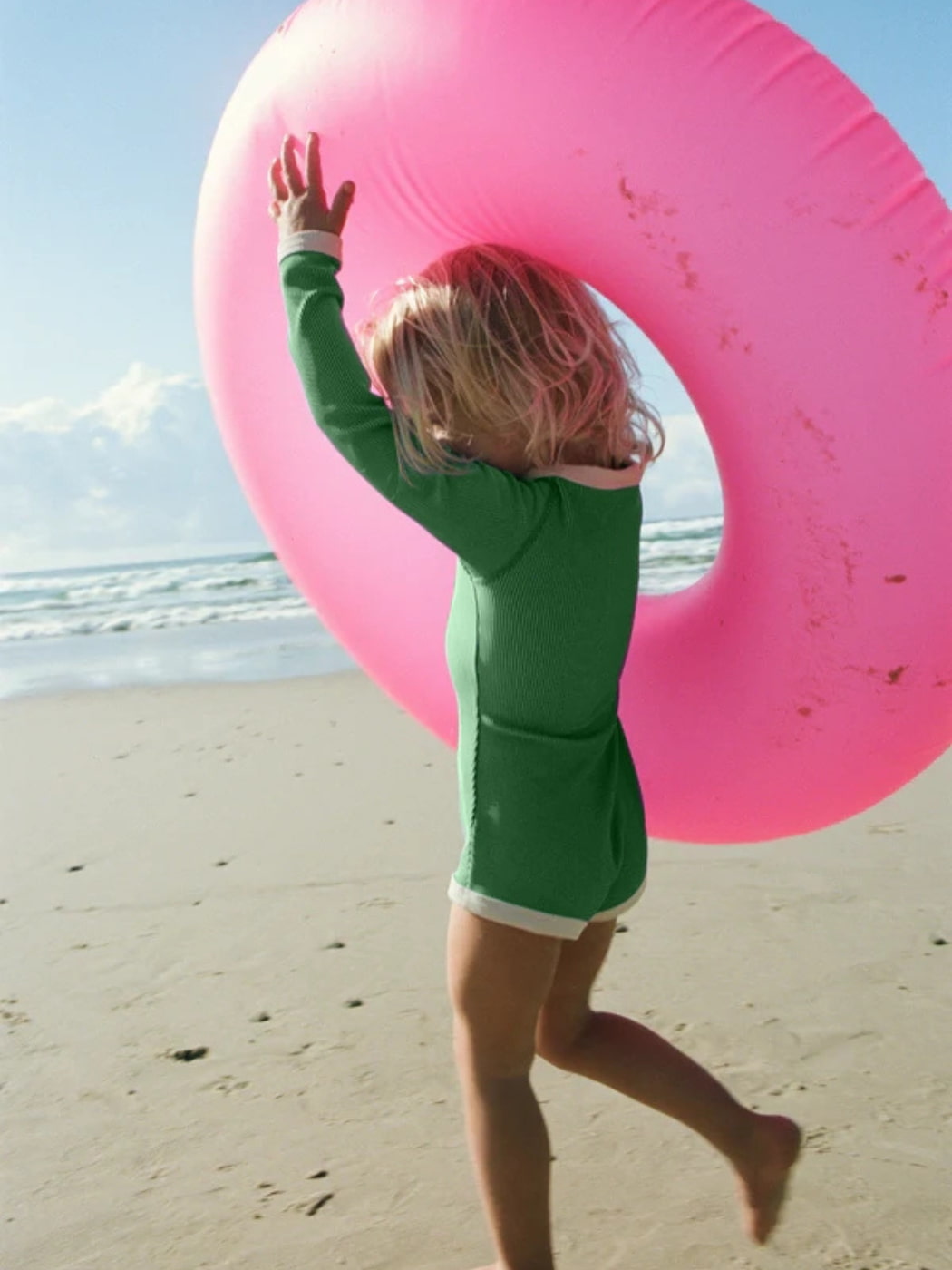 Our absolute go-to when it comes to sun safety and swimming. The Rib Rashie Onesie by Zulu & Zephyr is a long sleeve, ribbed style, featuring contrast rib binds and zip entry for easy access. This new colourway has a thin white stripe on top of the rib, to give off a very cool effect. Made for long days at the beach, this has a sun protection rating of 50+.