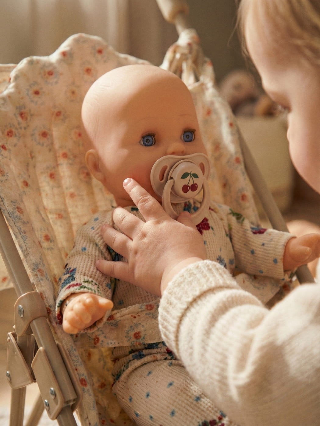 Eine wunderschöne Puppe von Konges Sløjd mit einem weichen Körper aus Bio-Baumwolle und einem Gesicht und Gliedmaßen aus Vinyl. Billie kommt mit einem zitronenfarbenen Pyjama und einem zitronenfarbenen Schnuller. Die Details dieser Puppe sind atemberaubend, wie die winzigen Grübchen an den Händen und die glitzernden Augen. Billie wird geschenkfertig in einer schönen Schachtel mit Schleife geliefert. Aufgrund von Kleinteilen ab 3 Jahren geeignet. Passend für die meisten Puppenkleider mit 32 cm.