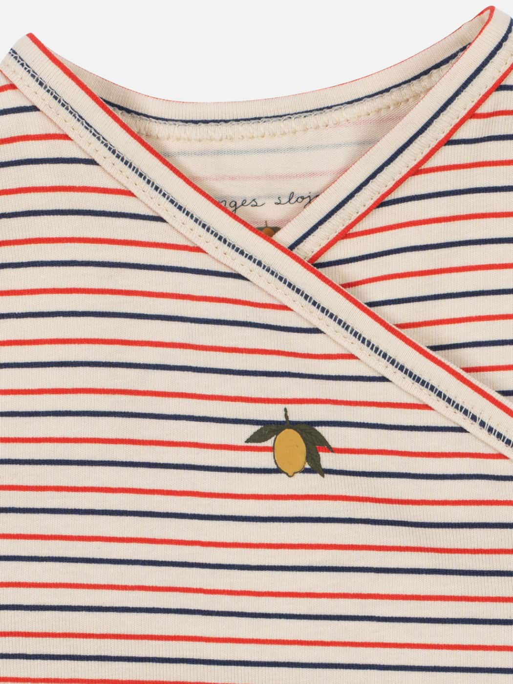 A soft long-sleeved wrap body for newborns made from organic cotton with a hint of stretch for a comfy fit. Features snap buttons along the sides and crotch that make it easy to dress your baby. A beautiful classic by Konges Slojd.