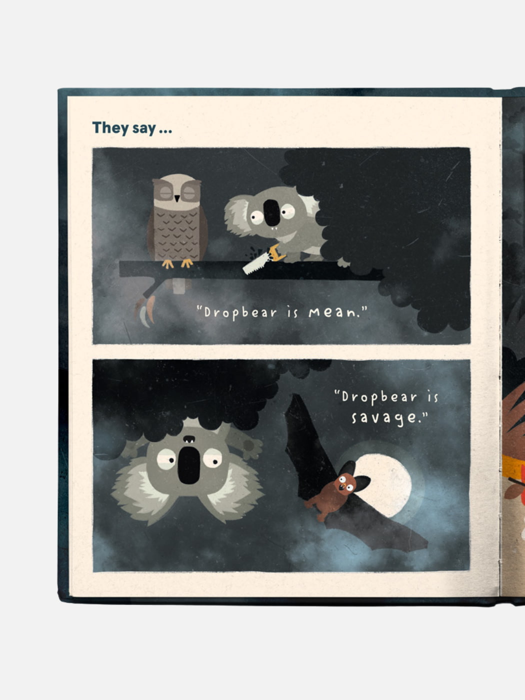 Take a rhyming romp through the bush, where things aren’t always as they seem. Hold your breath and count to three, as a gang of Aussie animals share spooky stories about Dropbear. Rumour has it, the dropbear meanie lives way up in an old gum tree. But when one little birdie decides to investigate the truth, it turns out that even Dropbears deserve the benefit of the doubt.